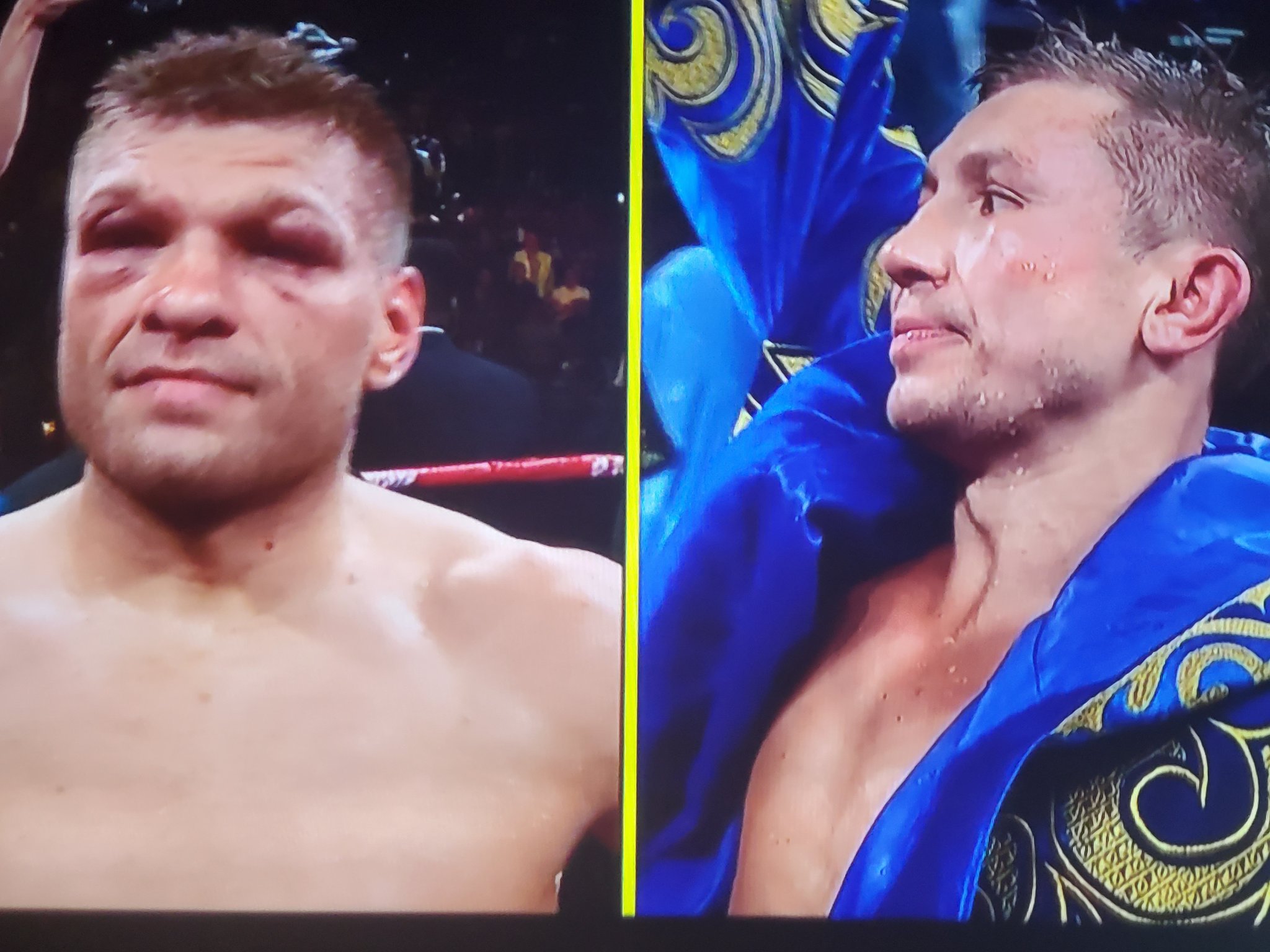 — Ребята, да ладно вам, — обратился Головкин к гулящей публике после боя. — Спасибо оппоненту, который проделал хорошую работу, уважаю его команду. Уже говорил, что это очень серьезный соперник. Понимаю, что мне нужно было делать в ринге большее. После первого раунда мне казалось, что это легкий бой, но получился тяжелым.