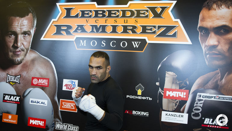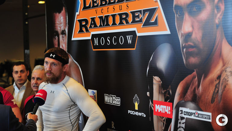 Чемпион мира по версии по версии WBA россиянин Денис Лебедев и чемпион мира по версии IBF аргентинец Виктор Рамирес провели открытые тренировки перед боем в Москве 21 мая.