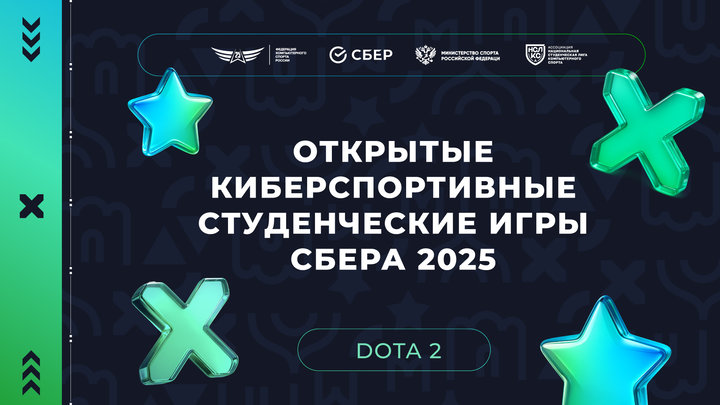 Федерация компьютерного спорта России объявляет о старте Открытых киберспортивных студенческих игр Сбера, которые традиционно включают два турнира: всероссийские и международные соревнования. В этом году мероприятие пройдёт по дисциплине «Боевая арена» (Dota 2). Призовой фонд турнира составит 2 000 000 рублей.
