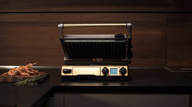 В комплекте идет три вида сменных панелей: ребристые, гладкие, для вафель. Также имеется термощуп для идеально точной прожарки. Ко всему этому есть даже пресс для создания идеальных котлет для бургеров. Пользователи не отмечают недостатков, но зато выделяют дорогие материалы корпуса и современный дизайн, который будет смотреться дорого на любой кухне.