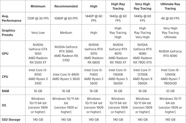 А вот чтобы насладиться игрой на максимальных настройках (4K, 60 FPS и рейтрейсинг), нужны процессор Intel Core i9-12900K или AMD Ryzen 7 7800X3D, видеокарта NVIDIA GeForce RTX 4090 и 32 Гб ОЗУ. До выхода игры осталось всего несколько часов — правда, в российском регионе проект недоступен.