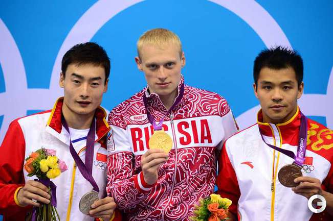 Прыжки в воду. Лондон. Олимпийские игры. Мужчины. Трамплин, 3м. 1. ЗАХАРОВ (Россия) - 555,90. 2. К. Цинь (Китай) - 541,75. 3. Ч. Хэ (Китай) - 524,15. 4. П. Хаусдинг (Германия) - 505,55. 5. Дюмэйс (США) - 498,35. 6. Я. Кастильо (Мексика) - 492,70. 7. И. Уоррен (Австралия) - 488,95. 8. И. Кваша (Украина) - 462,25. Фото AFP