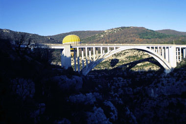 - Ну, это вообще песня. Большой Вердонский каньон, юг Франции, Альпы. Кстати, привез домой два камня со дна этого самого глубокого каньона Европы. Друзья бейсеры предложили просто полетать. Никаких целей я не ставил. Когда прибыл на место, увидел этот каньон, у меня крыша съехала. Там отвесные стены по 300 - 400 метров. У моста ширина каньона в верхней части 50 метров, внизу он сужается до 30, длина 187 метров. К этому времени мой опыт полетов составлял 17 лет. Я понимал, что в горах есть такое понятие, как холодный стоковый ветер. Какой бы ветер по верху ни шел, внизу, как у нас в пойме, живет свой ветер, который обусловлен стоком холодной массы воздуха. Понимал, что если я глубоко нырну в каньон, этот ветер меня под мостом протащит.