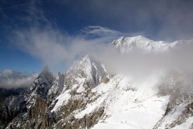 Монблан был слева от той горы, на которую нам предстояло взойти. Но вначале мы не пошли, а поехали на подъемнике до границы снегов. Высадившись, вдоволь полюбовавшись окрестностями и запечатлев себя, любимых, на их фоне, приступили к главному: надеванию кошек. Лично я даже и не пыталась сделать это самостоятельно: все ловко и быстро проделал гид. Мне впервые в жизни предстояло лишь пройти в них по снегу…