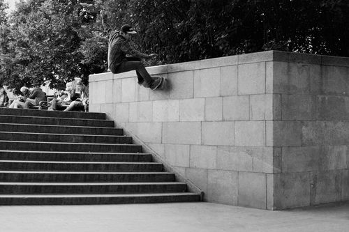 - Почти никогда, обычно происходит наоборот, мы приходим на спот, я пару раз пробую кикфлип на ровном месте и потом говорю глубокоуважаемому Павлу Петровичу Крюкову, что готов, но, к сожалению, такое торопление и неразумный подход к делу нередко заканчивается сильными падениями, но итогом я как правило доволен.