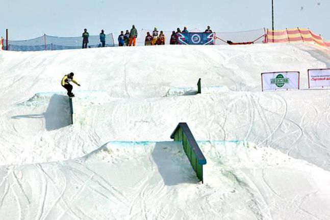 В пятницу, в последний день соревнований чемпионата России в акробатических дисциплинах сноуборда в Ижевске, был проведен старт в новой олимпийской дисциплине "слоупстайл", в которой на данный момент достаточно успешно выступает наша сборная как в Кубках мира, так и Кубке Европы. Всего вчера стартовали 50 участников из 11 регионов России, в том числе лидеры сборной команды России Сергей Лапушкин, Дмитрий Репников и Алексей Соболев.