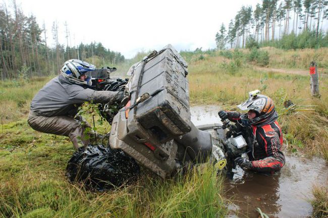 Справка: Трофи-рейды на квадроциклах - молодое и стремительно развивающееся направление мотоциклетного спорта, где на первое место выходит выносливость спортсмена, его умение справляться с тяжелыми физическими нагрузками. Также участник должен хорошо ориентироваться на местности (с помощью приборов GPS). Соревнования проводятся по маршрутам протяженностью около 250 км, разделенных на специальные участки (СУ) — тяжелые, разнообразные дороги, требующие использования возможностей ATV, в том числе глубокая колея, броды, песок, болота, камни и т.п. Последние несколько лет один из спецучастков может проходить на авто- и мотодромах в черте города, что неизменно привлекает большое количество зрителей.