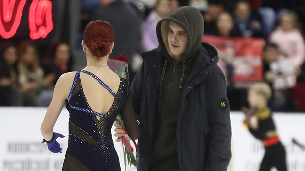 И после того как прокат Трусовой закончился, с рядов повыше ринулся вниз мощный парень с букетом. Все происходило буквально в метре от нас — вот он перепрыгивает через борт, вот уже идет к не подозревающей ничего Трусовой, дарит букет... В какой-то момент показалось, что предложение сделает, но обошлось. И преспокойно покинул арену через выход, который используют фигуристы. Там его и схватили сотрудники безопасности арены, провели через микст-зону.