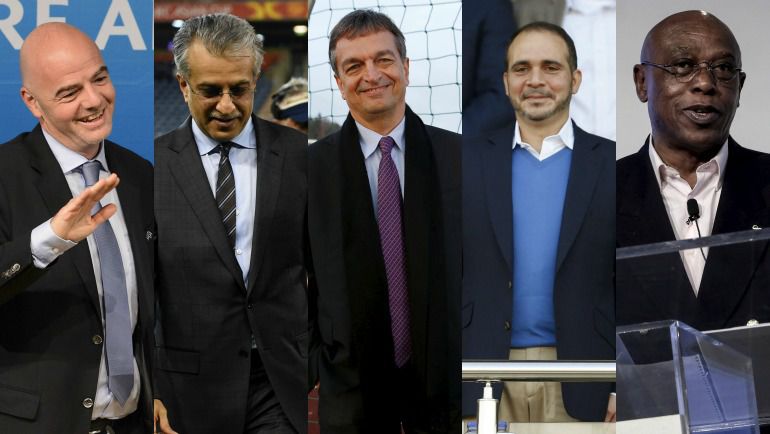 Аль-Хусейн уже боролся за пост президента ФИФА на выборах в этом году, однако проиграл Блаттеру. Аль-Халифа возглавляет Азиатскую футбольную конфедерацию. Жером Шампань ранее занимал пост генсека ФИФА и считается ставленником самого Блаттера. Бизнесмен Токио Сексвале ранее занимал пост в парламенте ЮАР, а также является бывшим политзаключенным и героем борьбы с апартеидом. Джанни Инфантино - генеральный секретарь УЕФА. Ранее он заявлял, что снимет свою кандидатуру, если до выборов будет допущен Платини.