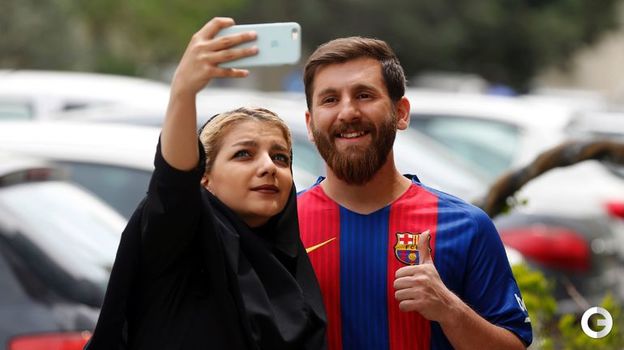 Ставший героем соцсетей двойник нападающего "Барселоны" Лионеля Месси провел в Тегеране фотосессию для агентства AFP.