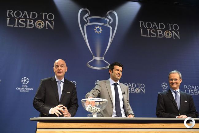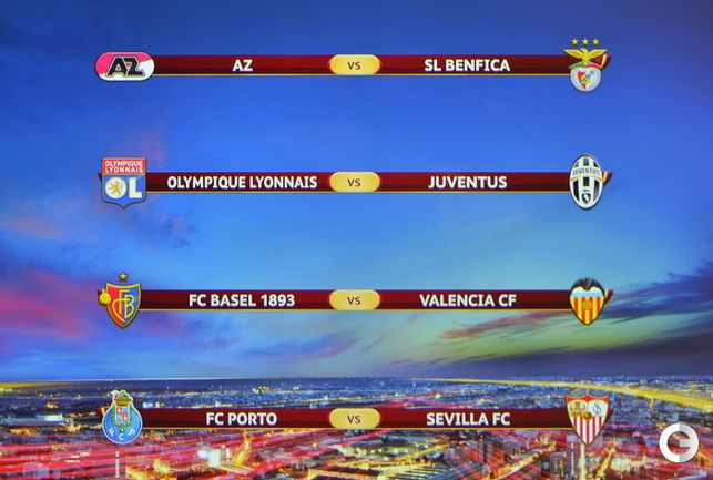 В швейцарском Ньоне состоялась жеребьевка четвертьфиналов Лиги чемпионов. В 1/4 финала турнира сыграют: "Барселона" (Испания) – "Атлетико" (Испания), "Реал" (Испания) - "Боруссия" Д (Германия), "ПСЖ" (Франция) - "Челси" (Англия), "Манчестер Юнайтед" (Англия) - "Бавария" (Германия); также состоялась жеребьевка четвертьфиналов Лиги Европы. В 1/4 финала турнира сыграют: АЗ (Голландия) – "Бенфика" (Португалия), "Лион" (Франция) – "Ювентус" (Италия), "Базель" (Швейцария) – "Валенсия" (Испания), "Порту" (Португалия) – "Севилья" (Испания). Фото AFP