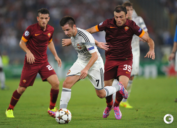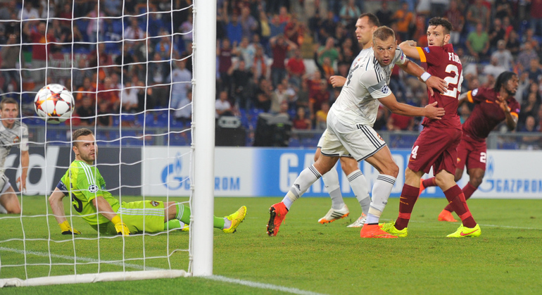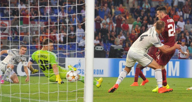 Футбол. Лига чемпионов. Групповой турнир. 1-й тур. Группа Е. "Рома" (Италия) – ЦСКА (Россия) – 5:1 (4:0). Голы: Итурбе, 6 (1:0). Жервинью, 10 (2:0). Майкон, 20 (3:0). Жервинью (4:0). Игнашевич, 50 – в свои ворота (5:0). Муса, 82 (5:1). Фото - Александр ФЕДОРОВ, "СЭ"