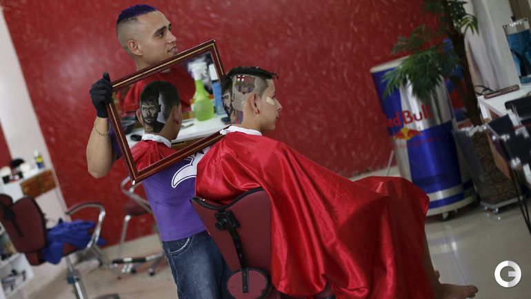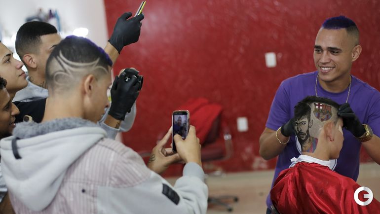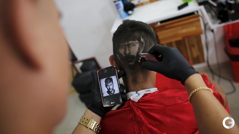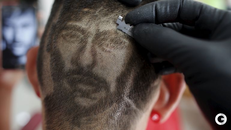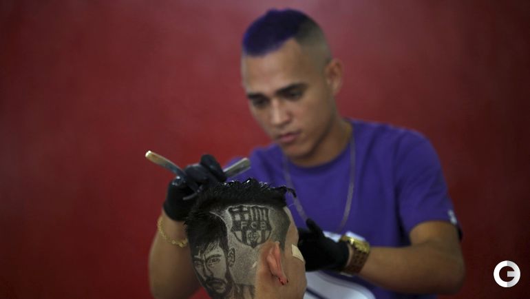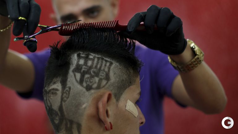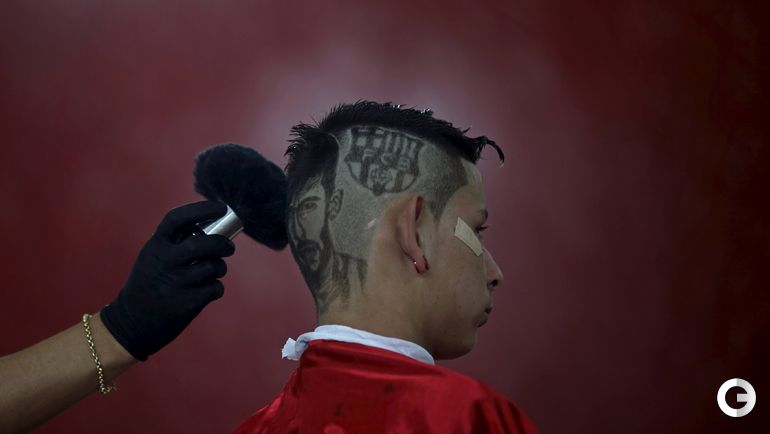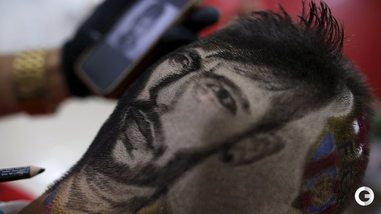 После разгрома 3:0, которой учинила "Барселона" мюнхенской "Баварии" в первом полуфинале Лиги чемпионов, 27-летний парикмахер Нарико из Сан-Висенте, создал с помощью ножниц и бритвы на голове 15-летнего бразильского фаната каталонцев портрет Неймара. Форвард забил в матче третий мяч. Фото REUTERS
