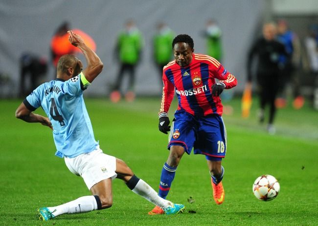21 октября 2014 года. Химки. ЦСКА - "Манчестер Сити". Армеец Ахмед МУСА и Венсан КОМПАНИ. Фото - Антон СЕРГИЕНКО, "СЭ"
