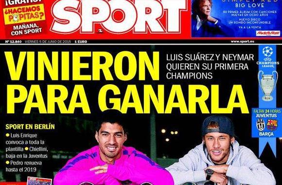А вот издание Sport решило обойтись на передовице без Месси. Вместо этого каталонская газета усадила рядом с массивными лигочемпионскими вазами уругвайца Суареса и бразильца Неймара. Оба пока ни разу не побеждали в главном клубном турнире Европы. Бразилец уже заявил, что предстоящий матч самый важный в его жизни.