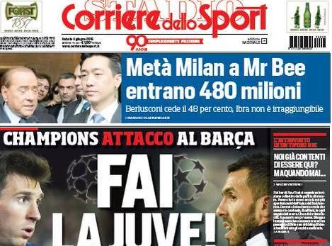 А другая популярная итальянская газета Corriero dello Sport отрядила на первую полосу двух аргентинцев - Месси и Тевеса. Сегодня они окажутся по разные стороны баррикад, а уже несколько дней спустя будут вместе защищать цвета сборной Аргентины на Кубке Америки. "Сделай это, Юве!" – гласит заголовок на передовице.