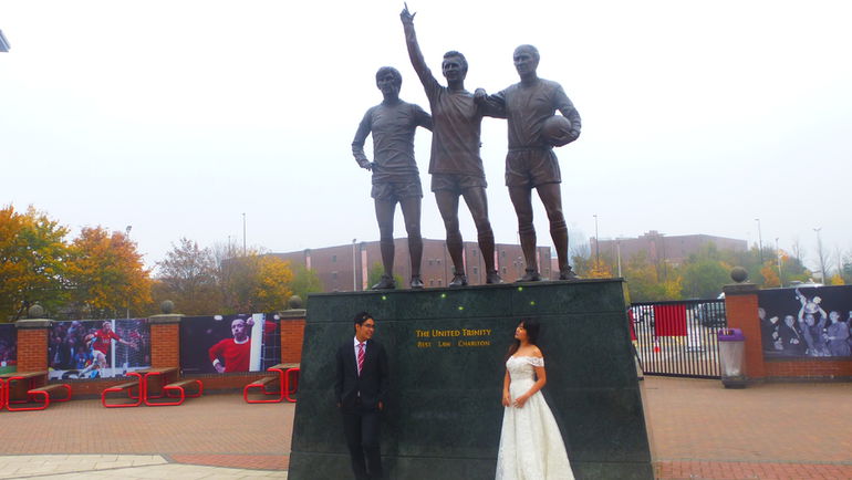 Не упустив возможности сделать фото, я подошел к жениху. И узнал, что они из Вьетнама, страстные фанаты "Юнайтед" и их мечтой было отпраздновать свадьбу именно на "Олд Траффорд". На весьма приличном для представителя юго-восточной Азии английском он сказал: "Представьте, мы первый раз в жизни в Англии! И сразу пошли к самому святому для нас месту. На завтрашний матч у нас есть билеты. С нетерпением ждем первой в жизни игры "Манчестер Юнайтед", которую мы увидим вживую. Они не могут нас подвести!"