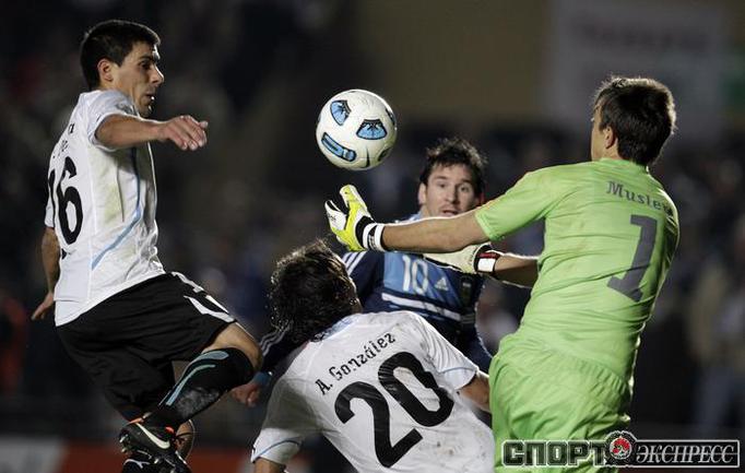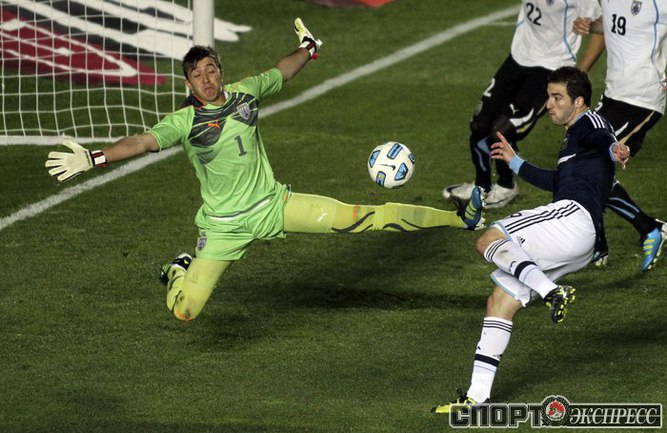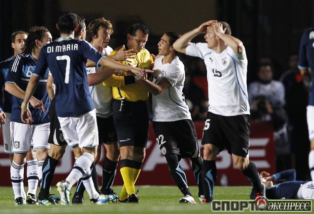 Футбол. Санта-Фе. Кубок Америки. 1/4 финала. Аргентина - Уругвай - 1:1 (1:1, пен. 4:5). Голы: Перес, 5 (0:1). Игуаин, 17 (1:1). Удаления: Перес, 38 (Уругвай). Маскерано, 86 (Аргентина). В серии пенальти единственный промах допустил форвард "Манчестер Сити" Карлос Тевес. Защитники "Спартака" Николас Пареха и Маркос Рохо провели весь матч на скамейке запасных. Фото REUTERS