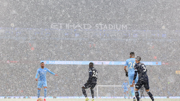 Не все города столкнулись с тяжелыми погодными условиями, но матч «Бернли» и «Тоттенхэма» пришлось перенести, а другие команды мучались в снежной жиже.