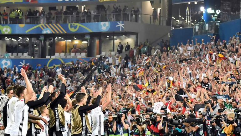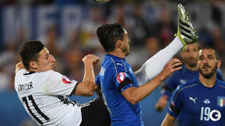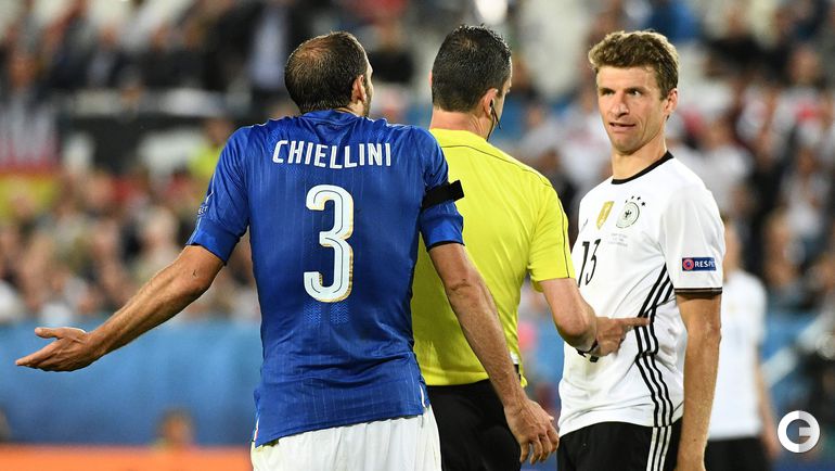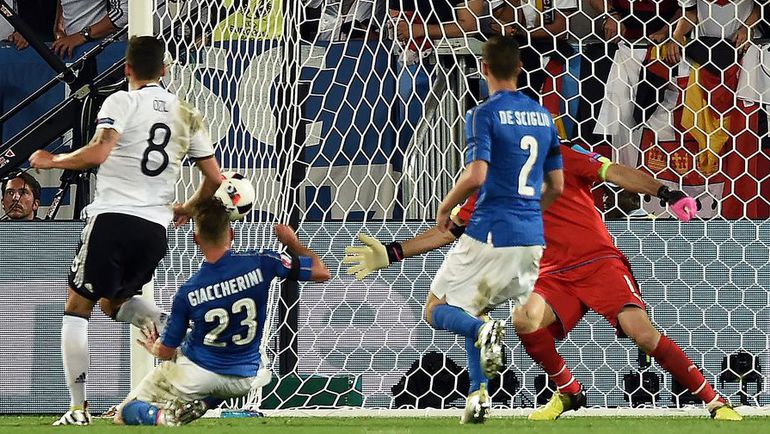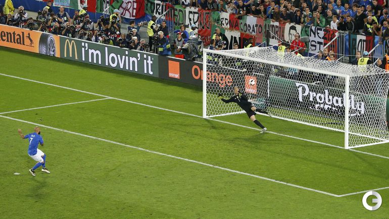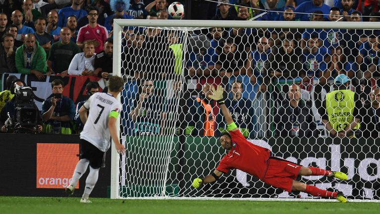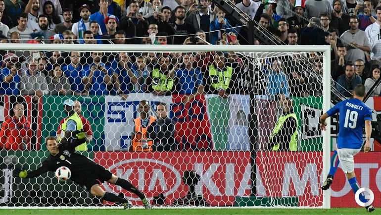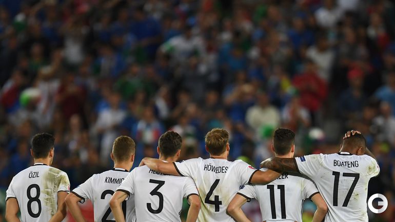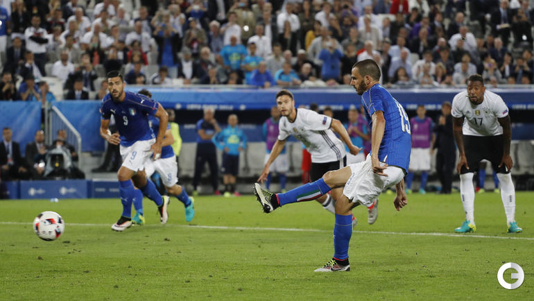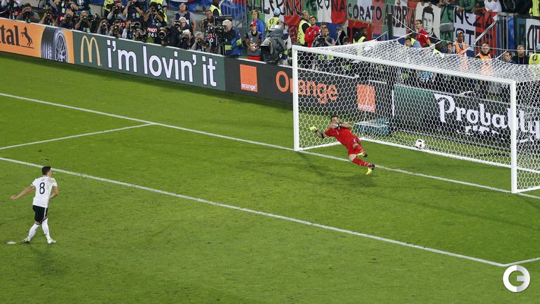 Серия пенальти: Инсинье – 0:1. Кроос – 1:1. Дзадза – 1:1 (мимо). Мюллер – 1:1 (вратарь). Барцальи – 1:2. Езил – 1:2 (штанга). Пелле – 1:2 (мимо). Дракслер – 2:2. Бонуччи – 2:2 (вратарь). Швайнштайгер – 2:2 (мимо). Джаккерини – 2:3. Хуммельс – 3:3. Пароло – 3:4. Киммих – 4:4. Де Шильо – 4:5. Боатенг – 5:5. Дармиан – 5:5 (вратарь). Хектор – 6:5.