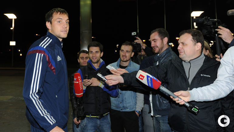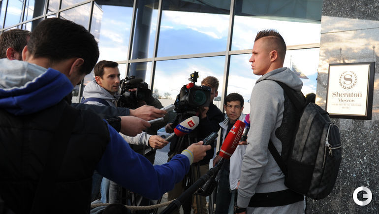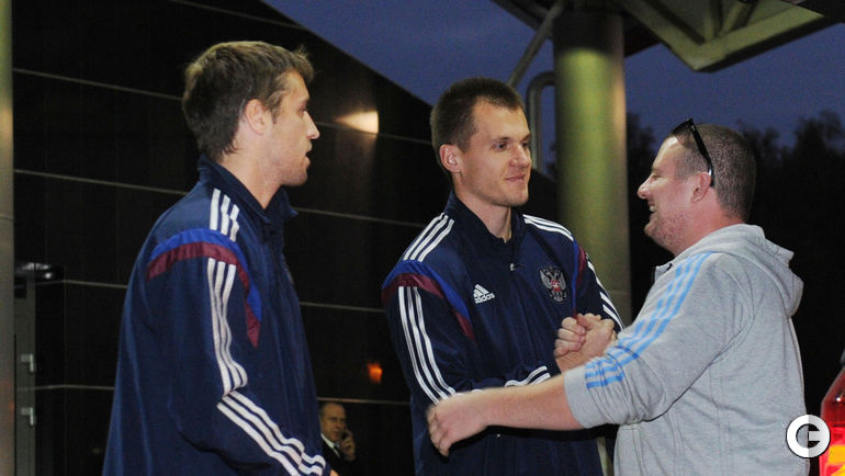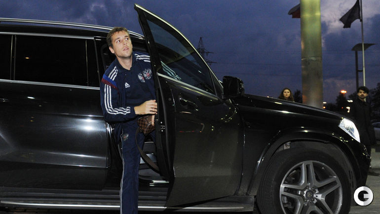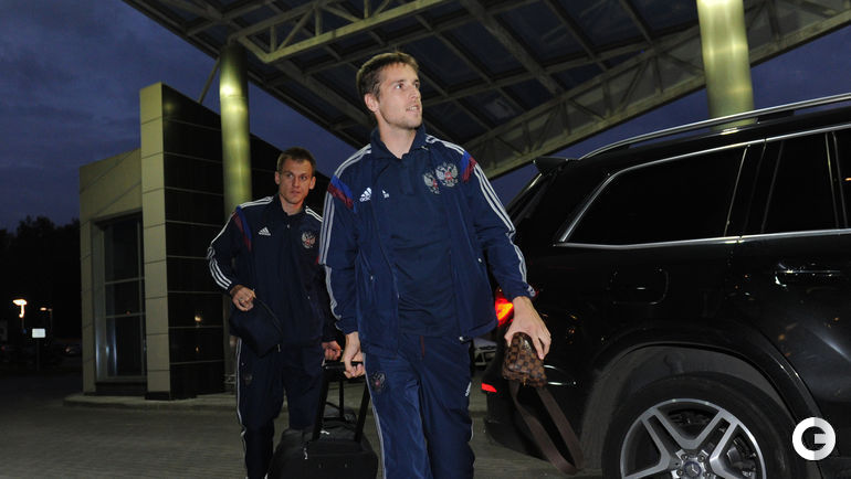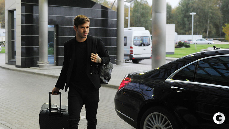 Сборная России начала сбор перед ключевыми матчами с Молдавией и Черногорией. Нападающий "Динамо" Александр Кокорин и полузащитник "Краснодара" Павел Мамаев прибыли в отель с опозданием в 15 минут. Игроки зашли в гостиницу через черный ход. На вопрос о том, в чем причина задержки, Кокорин ответил, что они долго не могли проехать через шлагбаум. Фото Александр ФЕДОРОВ, "СЭ"