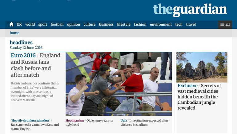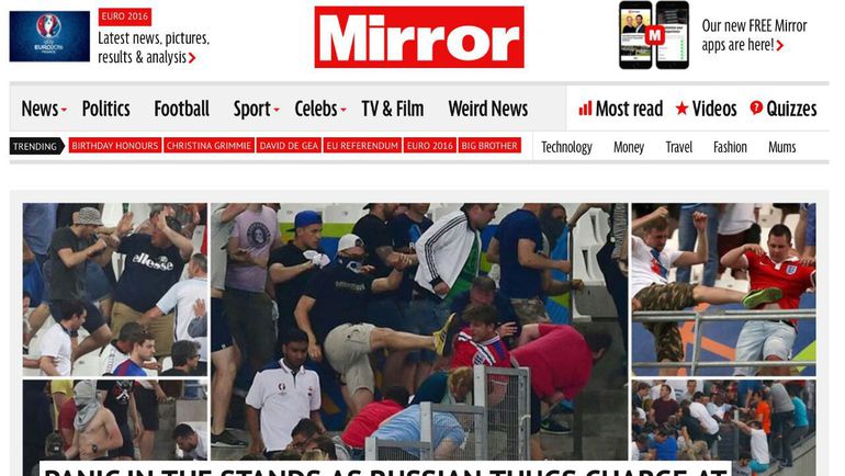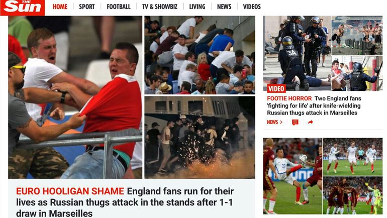 А где же Российские СМИ ....А ...понял ..на матч ТВ .....Англичане то же хорошо , но Россиян накажут ....Французы как всегда толерантны...хотя после терактов могли лучше организовать болельщиков ...