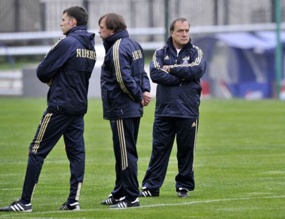 Пока же без него сборная в открытой части тренировки явила классическую программу. Пусть и продлили время наблюдения с традиционных 15 минут до получаса, ничего такого прессе не показали. Два "квадрата" и разминка под началом Роберта Одерленда. Специалист по физподготовке, как показалось, в последнее время заметно поправился. Одно дело - постоянная нагрузка в адвокатовском "Зените", другое - редкая занятость в международные окна. Впрочем, этому голландцу на поле не выходить. Куда важнее, чтобы в ударе были, например, Павлюченко и Погребняк. Кто-то из них, скорее всего, и заменит Кержакова. Хотя кто знает, чем удивит Адвокат. Как уверяет тренер, вариант построения атаки у него имеется. Да, коррективы могут внести повреждения или другие непредвиденные обстоятельства. Но если ничего не случится, не исключено, уже сегодня наставник раскрыл подопечным свою задумку. Разделение на основу и резерв могли подсмотреть и представители СМИ. Только словацкими шпионами становиться не хочется. Хотя пресс-служба РФС сообщила: Погребняк мини-матч пропустил и трудился с физиотерапевтом. У "зеленых" дубль сделал Дзагоев и забил Павлюченко. У "оранжевых" - эффектный Семшов.