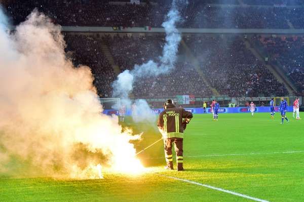 Впрочем, хорваты отыгрались практически тут же. Причем не без помощи Буффона. Перишич вошел в штрафную с левого фланга и не мудрствуя лукаво ударил. При этом голкипер "Скуадры адзурры" на мгновение запоздал с броском, и мяч под ним пролетел в ворота. На 28-й минуте хорваты остались без своего лидера Луки Модрича, который получил травму и был заменен. Тем не менее, гости и без Модрича смотрелись ничуть не хуже хозяев. В итоге на "Сан-Сиро" вплоть до финального свистка шли своеобразные качели – преимуществом попеременно владели то итальянцы, то хорваты, но завершилось все счетом – 1:1. Впрочем, игра вполне могла закончиться и досрочно. Минут за 20 до конца основного времени на хорватском секторе запылали файеры, часть из которых полетела на поле. Голландский арбитр Бьорн Кайперс сначала остановил встречу, а когда на той же трибуне начались беспорядки - стал решительно отправлять команды в раздевалки. И все же спустя какое-то время матч был доигран.