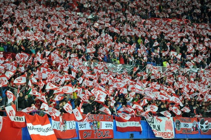 За сутки до матча десятки тысяч таких флажков уже лежало на каждом кресле стадиона "Эрнст Хаппель" дожидаясь своего часа. На протяжении всего вечера зрители размахивали ими как заведенные – под песню Life is life, гимн страны, гимн сборной, венский вальс или просто так, реагируя на происходящее на поле. Ну а больше всего поразило то, что публика не стала расходиться после финального свистка. Болельщики почти в полном составе провели на трибунах еще минут десять и вновь исполнили гимн своей команды, сочиненный несколько лет назад.