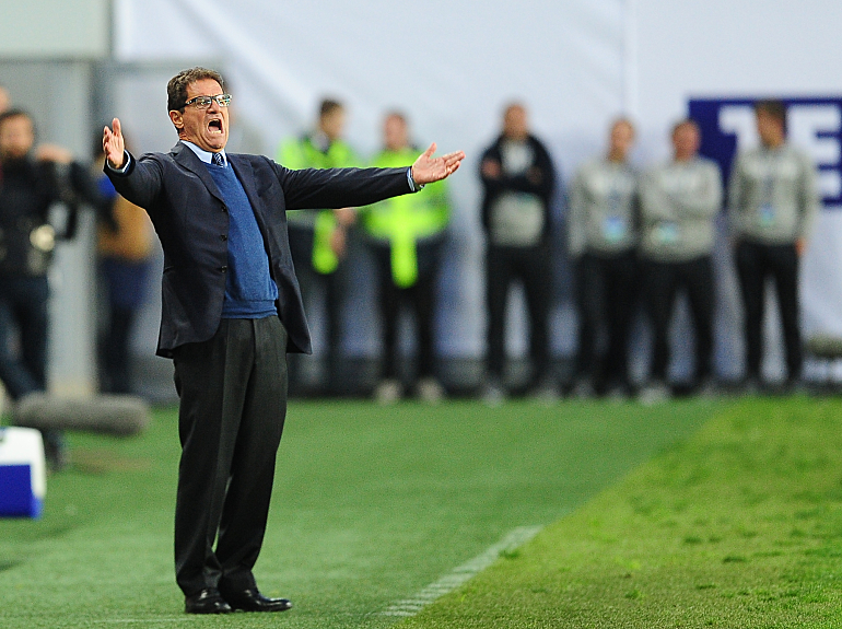 На первом фото не хватает кукишей, которые Капелло показывает болельщикам сборной России
