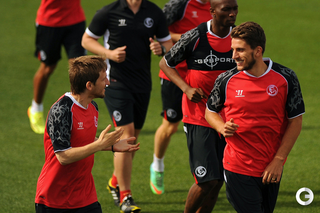 Футбол. Тренировка испанских команд перед ответными матчами в Лиги Европы: "Валенсии" и "Севильи". Фото AFP