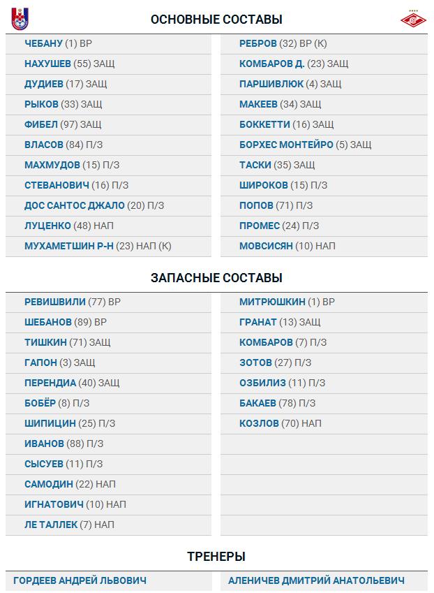 Представляем составы на первый матч дня "Мордовия" - "Спартак".
