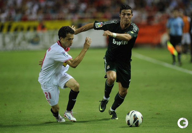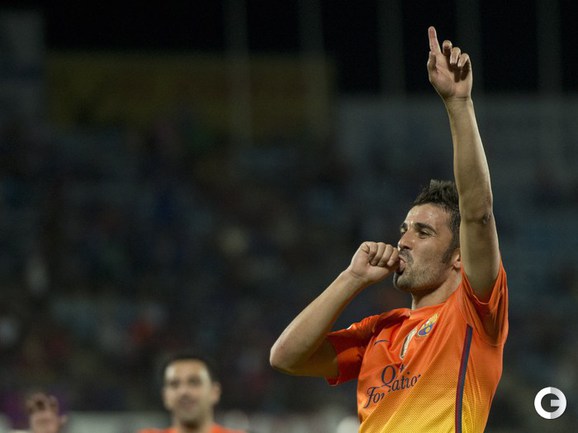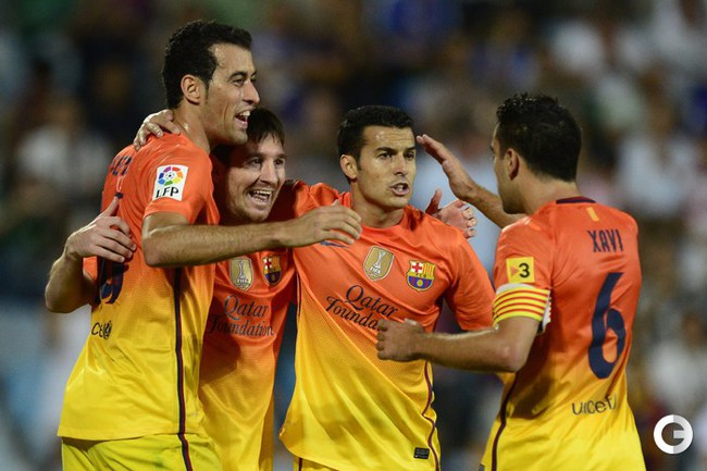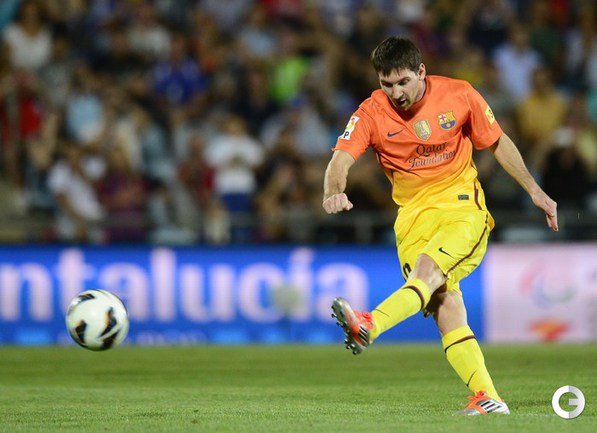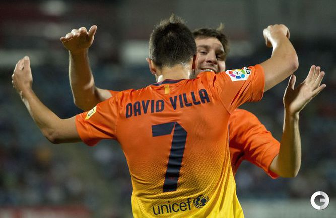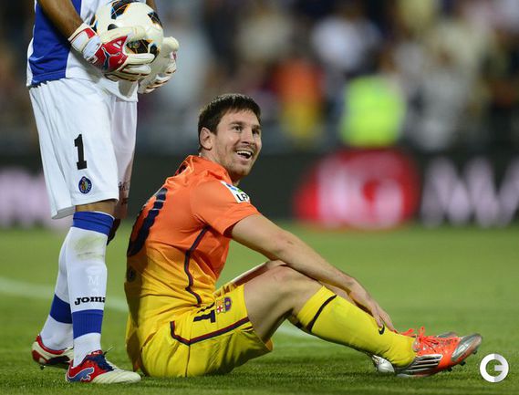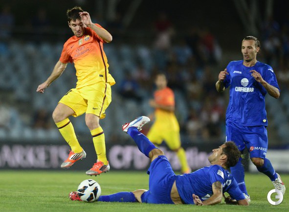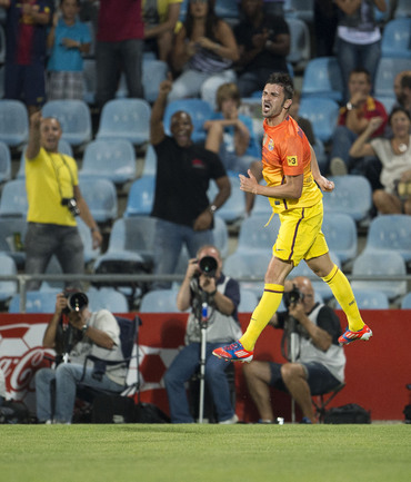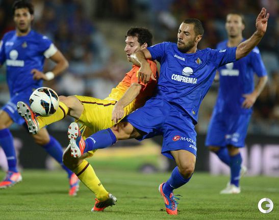 Футбол. Чемпионат Испании. Примера. 4-й тур. "Хетафе" - "Барселона" - 1:4 (0:1). Голы: Адриану, 32 (0:1). Месси, 74 - с пенальти (0:2). Месси, 78 (0:3). Маскерано, 80 - в свои ворота (1:3). Вилья, 90+1 (1:4). "Севилья" - "Реал" - 1:0 (1:0). Гол: Троховски, 2. Фото AFP