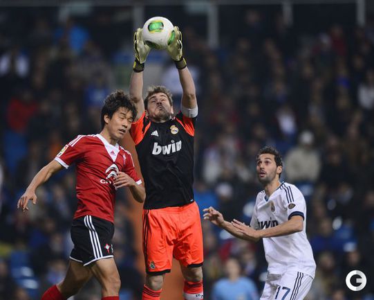 Кубок Испании. 1/8 финала. Ответный матч. "Реал" - "Сельта" - 4:0 (2:0). Голы: Криштиану Роналду, 3 (1:0). Криштиану Роналду, 24 (2:0). Криштиану Роналду, 88 (3:0). Хедира, 89 (4:0). "Реал": Касильяс, Рикарду Карвалью, Серхио Рамос, Арбелоа, Хаби Алонсо (Варан, 46), Эссьен, Модрич, Езил (Ди Мария, 75), Хедира, Криштиану Роналду, Бензема (Игуаин, 65). Место в воротах мадридцев занял Икер Касильяс, который начинал последние матчи в запасе. Фото AFP