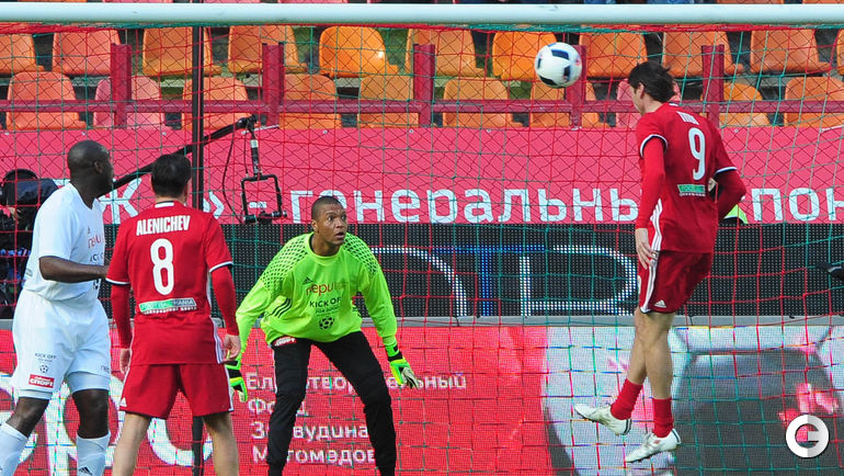 В Черкизове благотворительный матч между ветеранами сборных России и мира закончился победой хозяев - 3:2.