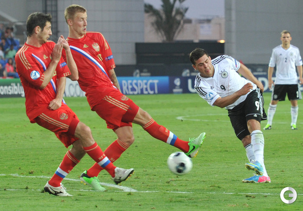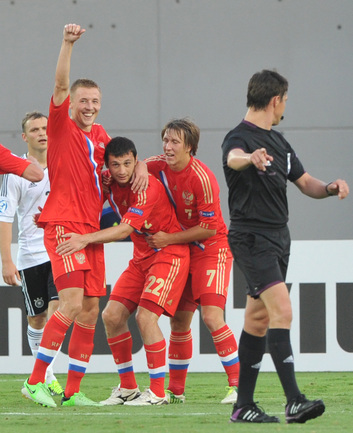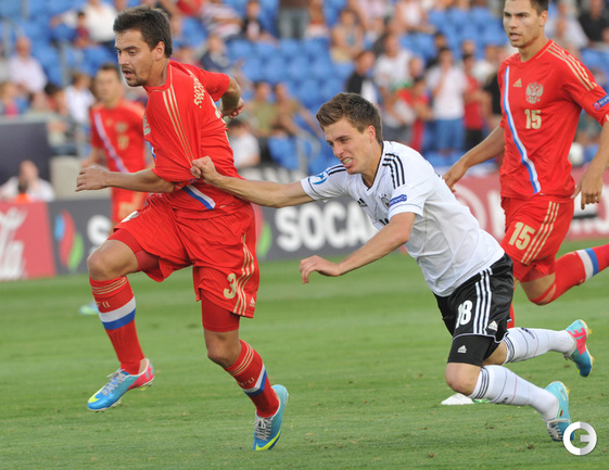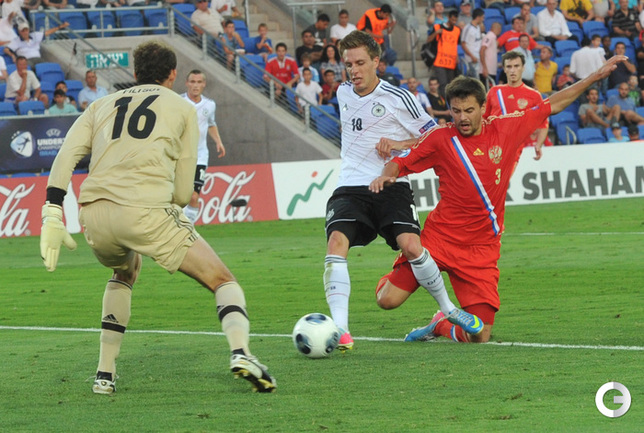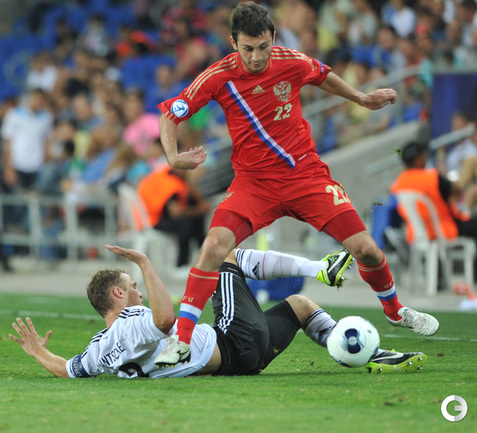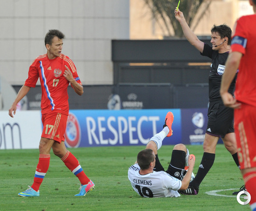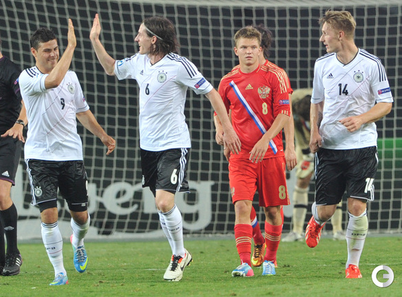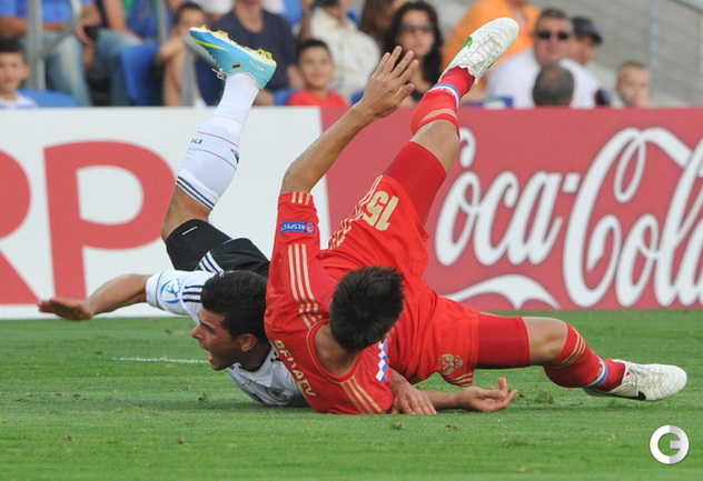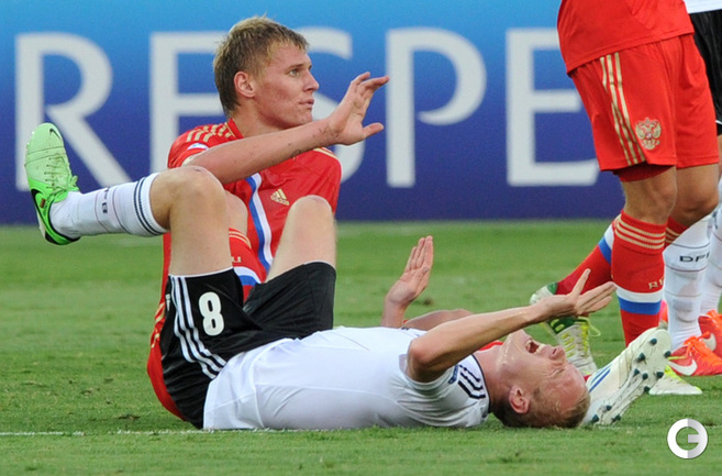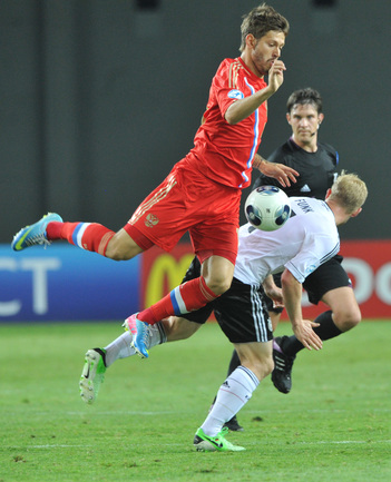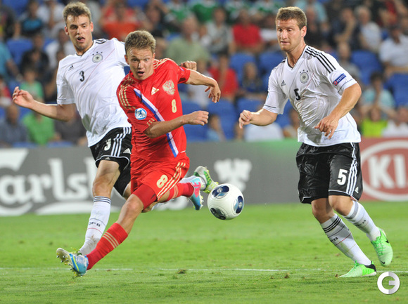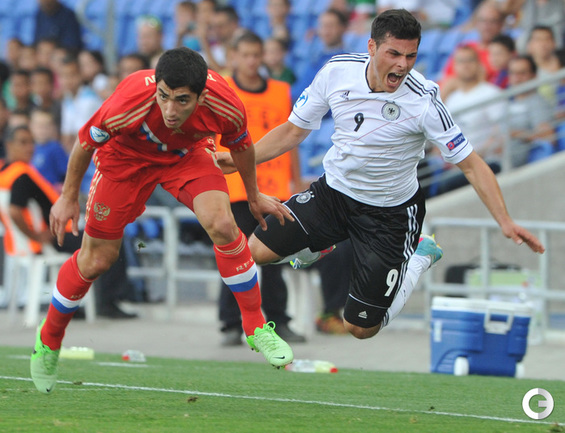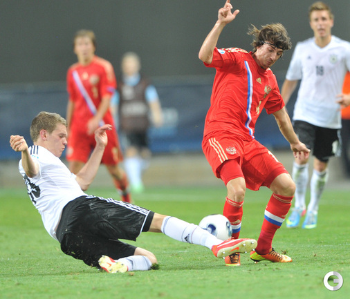 Чемпионат Европы (игроки не старше 21 года). Групповой турнир. 3-й тур. Группа В. Россия – Германия – 1:2 (1:1). Голы: Дзагоев, 22 (1:0). Херманн, 35 (1:1). Руди, 69 – с пенальти (1:2). Фото - Татьяна Дорогутина, "СЭ"