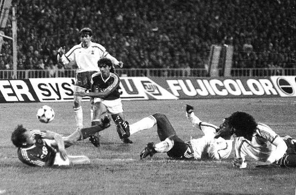 Пропущенный гол расстроил наших парней. Они долго не могли обрести спокойствие, наладить взаимопонимание. Оклемались ближе к концу тайма. Но и во втором долго не удавалось создать ничего путного у ворот Батса. Да и французы, явно не ожидавшие такого оборота, подрастерялись, отошли назад в надежде сохранить добытое преимущество. Замены Лобановского пошли впрок. Усилившийся натиск хозяев вынудил подуставшего соперника сосредоточиться на черновой оборонительной работе. Упустили Протасова. Он вынырнул из глубины, пронесся до лицевой линии и выдал идеальный пас на недавно вошедшего в игру Михайличенко — 1:1. Играть оставалось чуть больше десяти минут. Обе команды сил оставили немало. Наши по инерции продолжали наступать, гости пытались контратаковать. Но стало ясно — ничего уже не изменится. Ничья стала закономерным итогом в целом равного матча. Дух дьявола витал в тот вечер над «Лужниками». На 13 й минуте Туре забил гол. На 77 й, за 13 минут до конца, отыграл его футболист, вышедший на поле под номером 13.