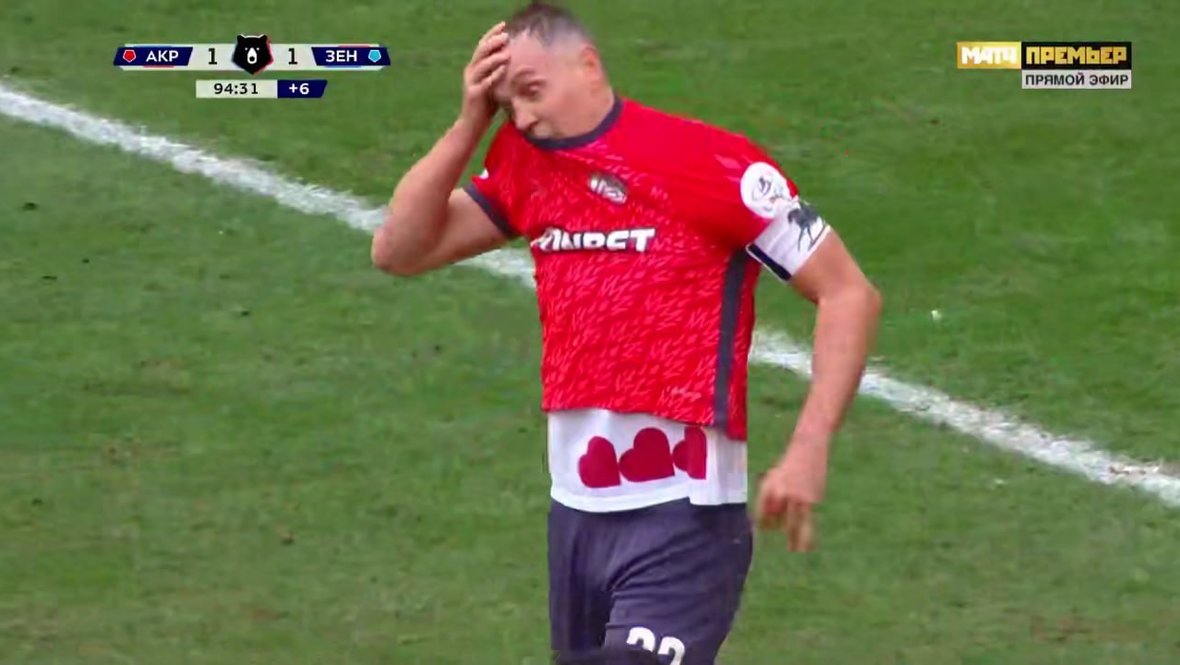 Под основной футболкой нападающего была заметна белая с тремя красными сердечками внизу.