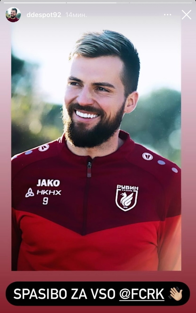 «Спасибо за все, «Рубин», — написал Деспотович, выложив в сториз свое фото.