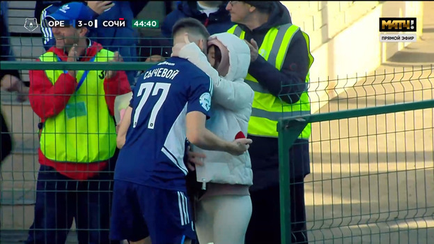 После забитого мяча Сычевой сделал предложение своей девушке, которая спустилась к полю. Форвард вручил ей букет цветов, а затем встал на колено и подарил ей обручальное кольцо.