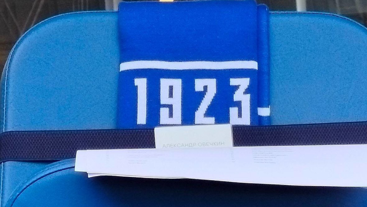 Об этом свидетельствует табличка на кресле вип-трибуны, передает корреспондент «СЭ» с места событий.