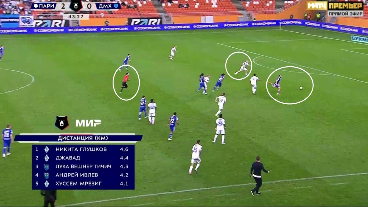 На 44-й минуте матча 5-го тура чемпионата России «Пари НН» — «Динамо» Мх судья Инал Танашев неверно оценил фол Эдгардо Фариньи, сбившего Гамида Агаларова, и ограничился вынесением предупреждения. Нападающий гостей убегал один на один с вратарем — его лишили явной возможности забить гол. В такой ситуации следовало наказать Фаринью красной карточкой и удалить его.