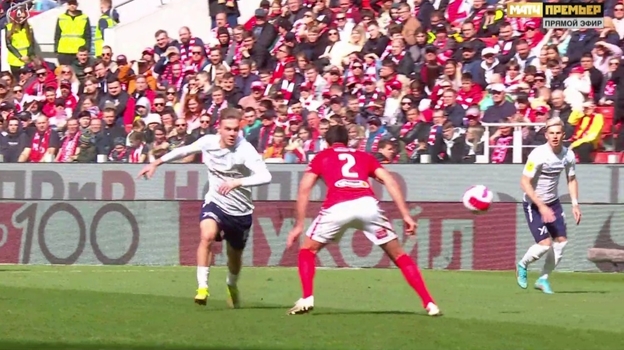 В моменте с назначенным пенальти движения рукой в сторону мяча не было, желтой просто быть не может. Был рикошет и попадание мяча в руку с расстояния в 60-70 см. Рука была отставлена. На усмотрение арбитра такое, четкой трактовки нет. На усмотрение в этом сезоне - всегда решение для Спартака негативное