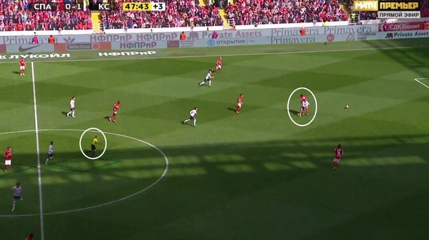 Самарский нападающий Максим Глушенков выбегал один на один с вратарем, Жиго сделал движение в направлении соперника и задержал его корпусом.