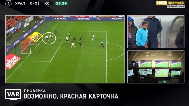 На 21-й минуте матча 14-го тура чемпионата России «Урал» — «Крылья Советов» арбитр Кирилл Левников, получив подсказку от второго ассистента Дмитрия Мосякина, правильно наказал Гленна Бейла 11-метровым ударом за игру рукой. Но спустя три минуты после просмотра видеозаписи судья ошибочно показал самарскому футболисту красную карточку и удалил его с поля.