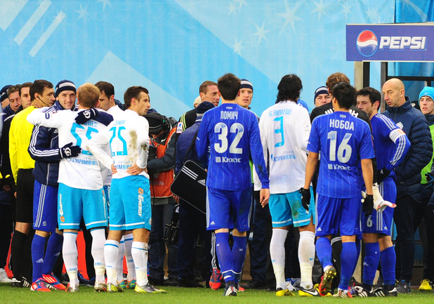 Футбол. Химки. Чемпионат России. 17 тур. "Динамо" - "Зенит" - 1:0. Матч остановлен. Фото - Антона СЕРГИЕНКО, "СЭ"