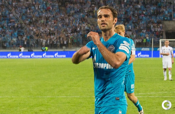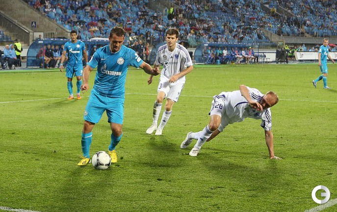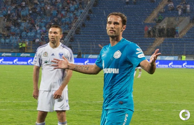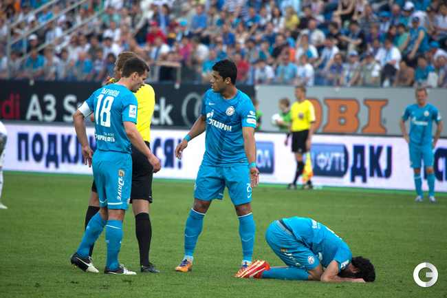 Чемпионат России. Премьер-лига. 29-й тур. "Зенит" (Санкт-Петербург) – "Волга" (Нижний Новгород) – 3:1 (1:1). Голы: Шуленин, 17 (0:1). Нету, 34 (1:1). Файзулин, 80 (2:1). Широков, 90+1 (3:1). Последний гол забил вышедший на замену Роман Широков, который после этого был удален за неприличный жест в адрес своих трибун. Фото - Кристина Коровникова