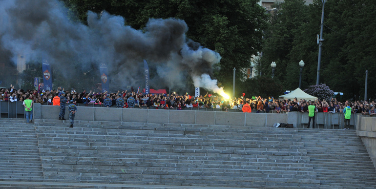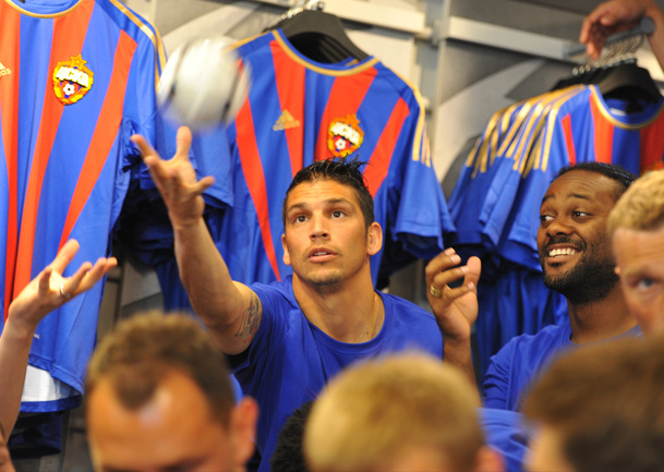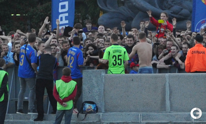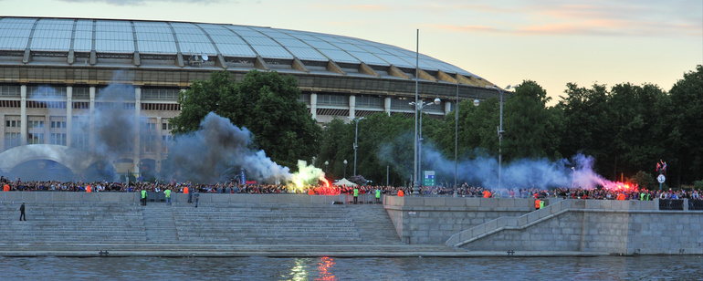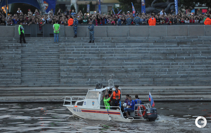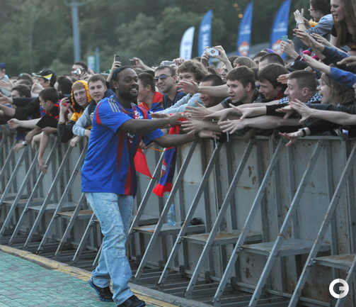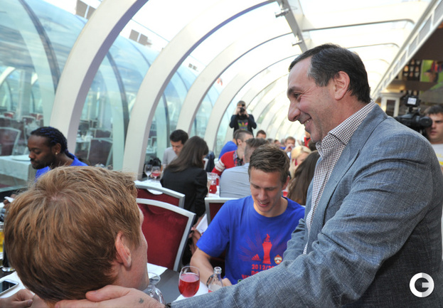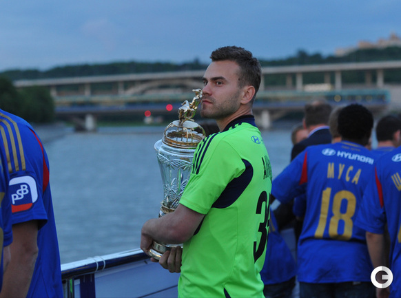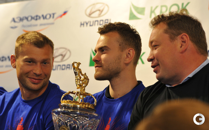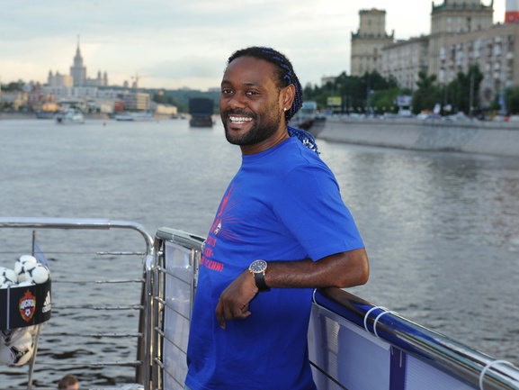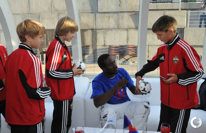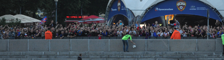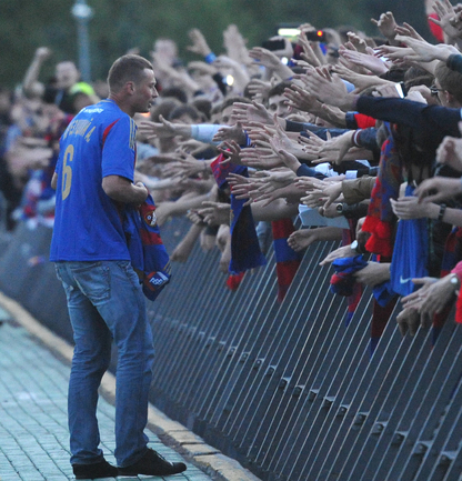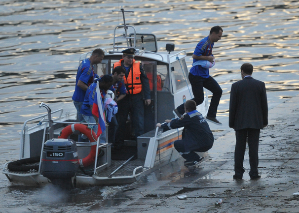 Новоиспеченные чемпионы России – игроки ЦСКА – вместе с чемпионским кубком отправились в плавание по Москве-реке на теплоходе. Фото Александра Федорова, Татьяны Дорогутиной, "СЭ"
