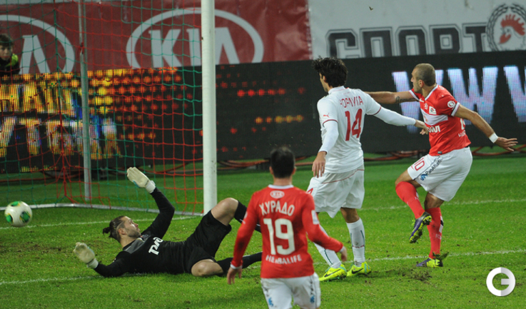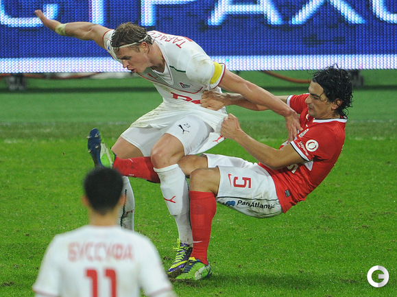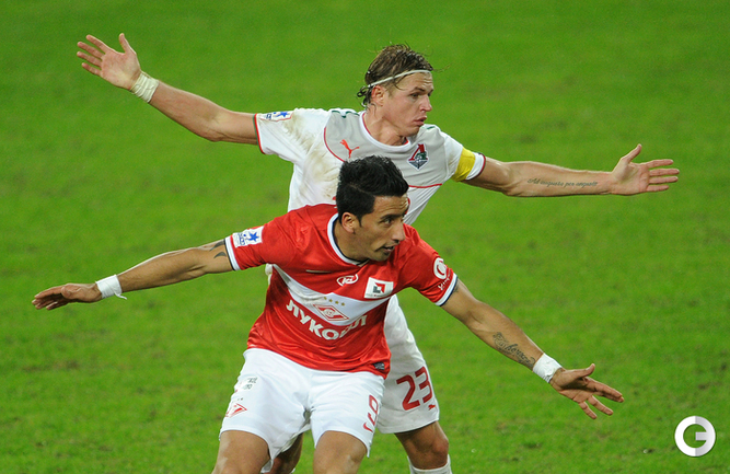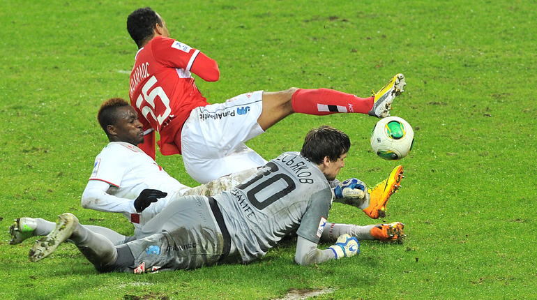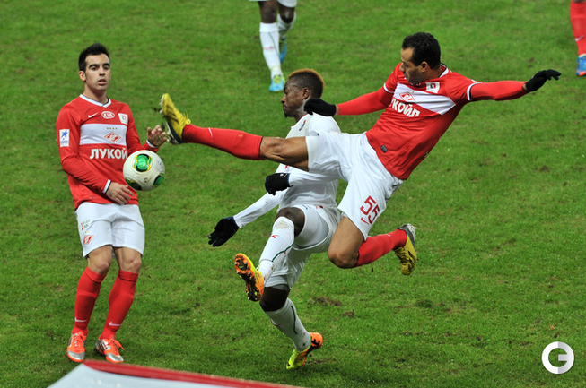 Футбол. Чемпионат России. Премьер-лига. 15-й тур. "Спартак" - "Локомотив" - 1:3 (1:2). Голы: Ндой, 7 (0:1). Самедов, 17 (0:2). Мовсисян, 27 (1:2). Ндой, 77 (1:3). Этот матч прошел без зрителей из-за беспорядков устроенных спартаковскими фанатами в Ярославле на матче Кубка России с "Шинником". Фото - Алексей ИВАНОВ "СЭ".
