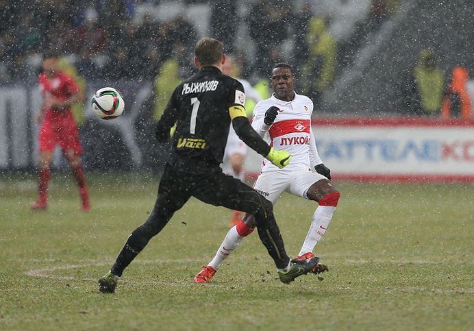 Вратарь "Рубина" Сергей РЫЖИКОВ стал одним из главных героев 17-го тура чемпионата России по футболу. На 70-й минуте своего 300-го матча за казанский "Рубин" страж ворот сбил в центре поля спартаковца Квинси ПРОМЕСА, но судья Сергей КУЛИКОВ даже не зафиксировала нарушения правил. В ответной атаке казанцы забили первый за вечер ответный гол. Этот и другие интересные моменты тура в фотографиях "СЭ".